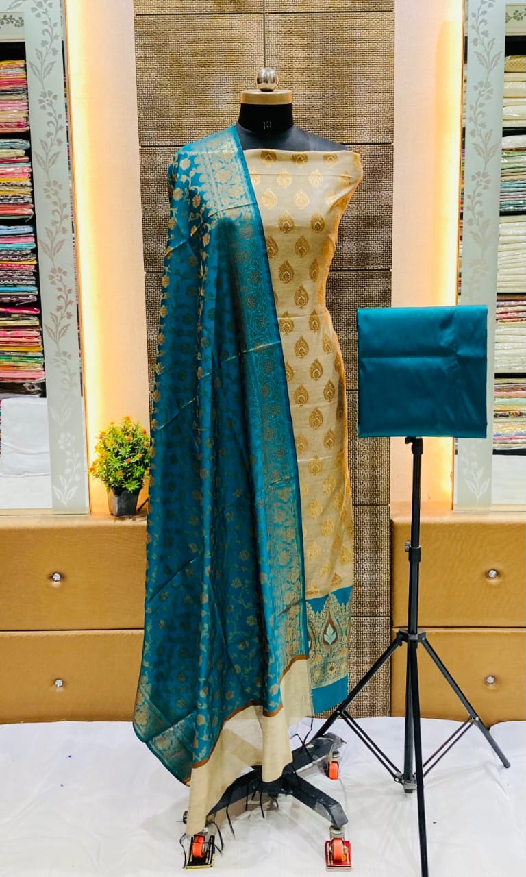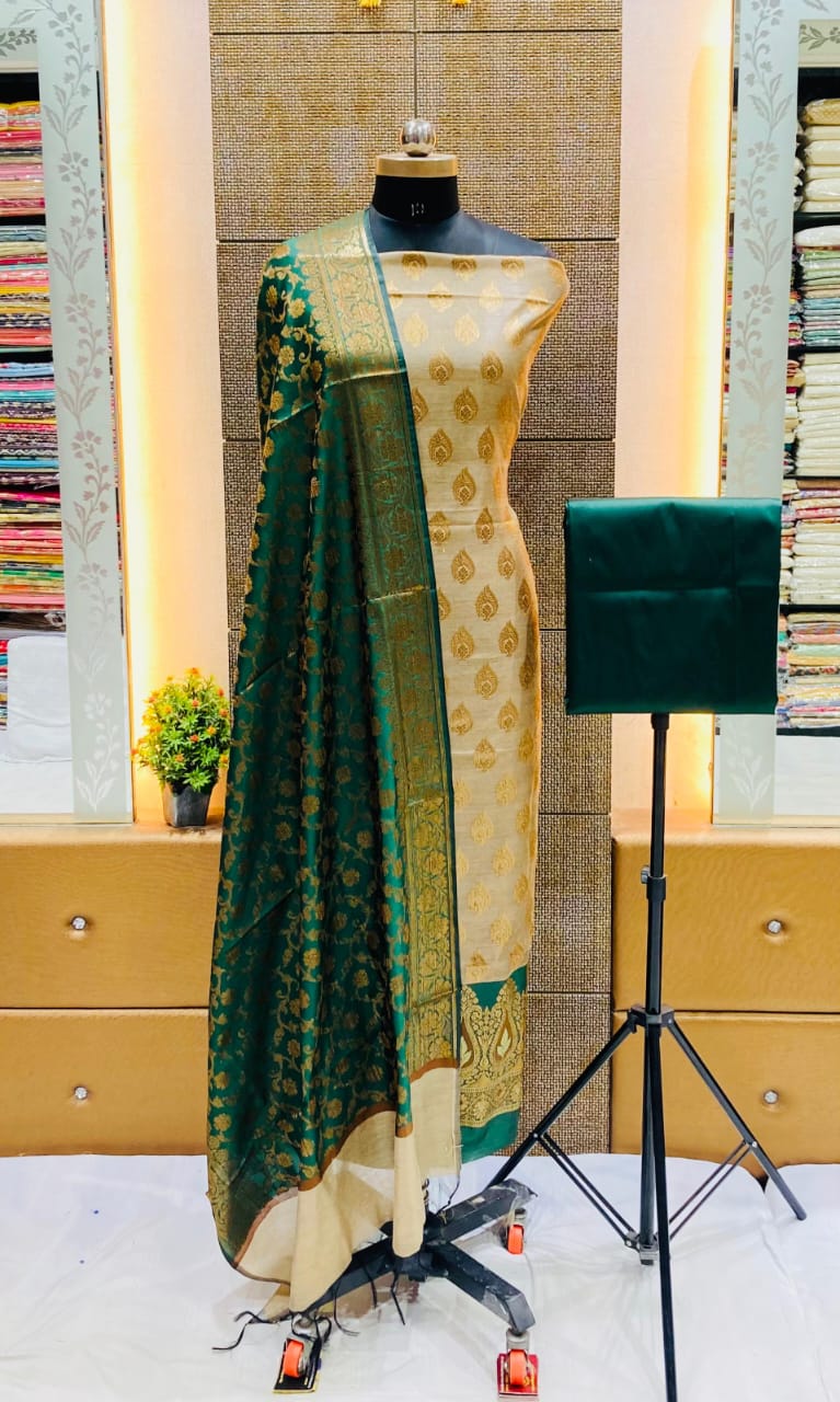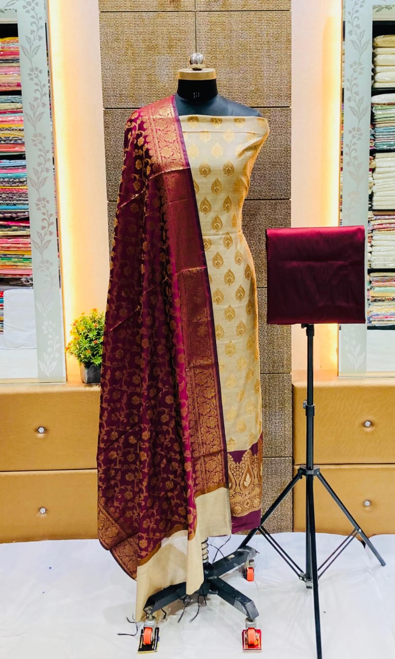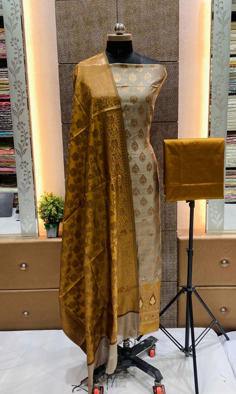 Exclusive Banarasi 3 pc Katan Silk Unstitched Salwar Suit with Dupatta